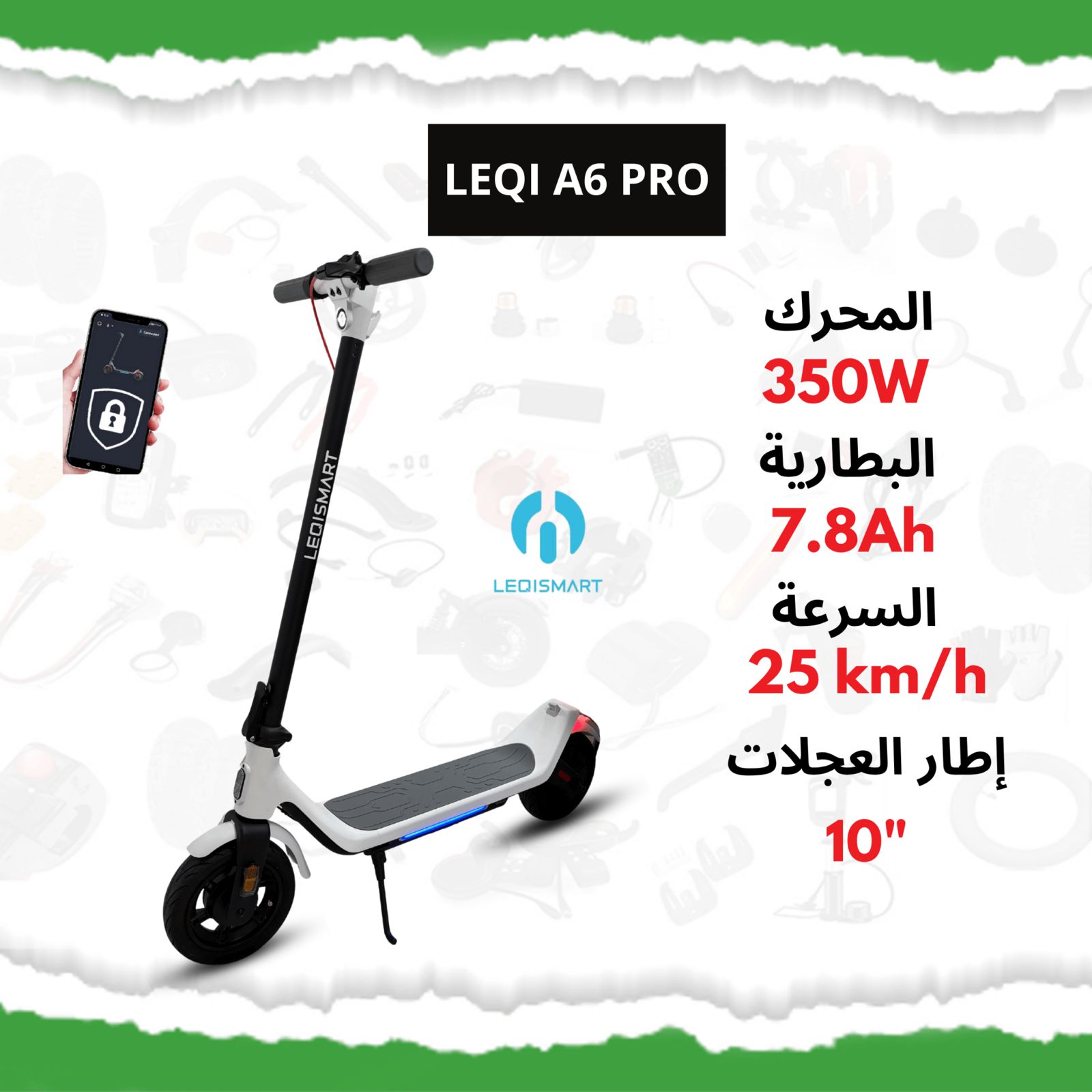 Trottinette Électrique LEQI A6 PRO – 350W, 10″ (LEOISMART / LEDISMART)